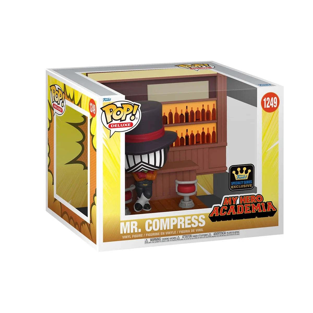 Mr. Compress is a member of the League of Villains, who uses his 'Compress quirk' as a means of fighting against the Pro Heroes. Assemble the League of Villains for your My Hero Academia collection with this My Hero Academia Mr. Compress (Hideout) Deluxe Funko Pop! Vinyl Figure #1249 - Specialty Series. Measures approximately 6-inches tall and comes packaged in a window display box.